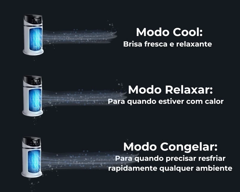 Fácil de usar, basta pressionar um botão, escolher a intensidade e gelar de verdade!